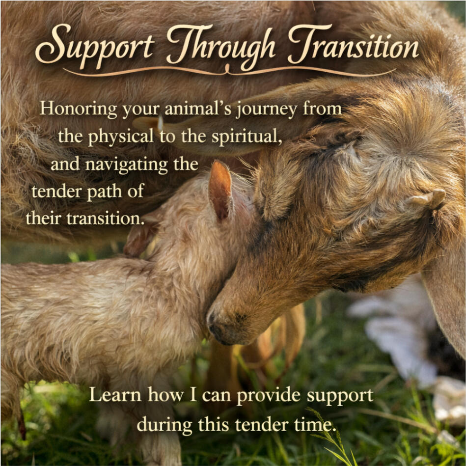 One of the most tender and challenging experiences we face with our animals is supporting them as they transition out of their physical body. Many guardians share a deep desire to honor their animal’s wishes and ensure they feel loved, safe, and understood during this time. This space was created to support you through that journey offering guidance, connection, and compassionate support as you navigate this meaningful transition alongside your animal